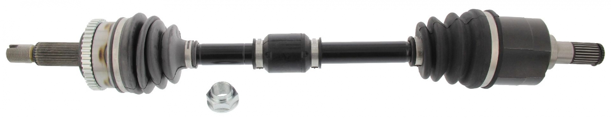 Antriebswelle Einbauseite Vorderachse links Länge [mm] 674 Gewindemaß M22x1.5 Außenverzahnung Radseite 27 Außenverzahnung Differenzialseite 25 Dichtringdurchmesser [mm] 60 Zähnezahl ABS-Ring 46 Gelenkdurchmesser radseitig [mm] 78 Gelenkdurchmesser getriebeseitig [mm] 80- Einbauseite: