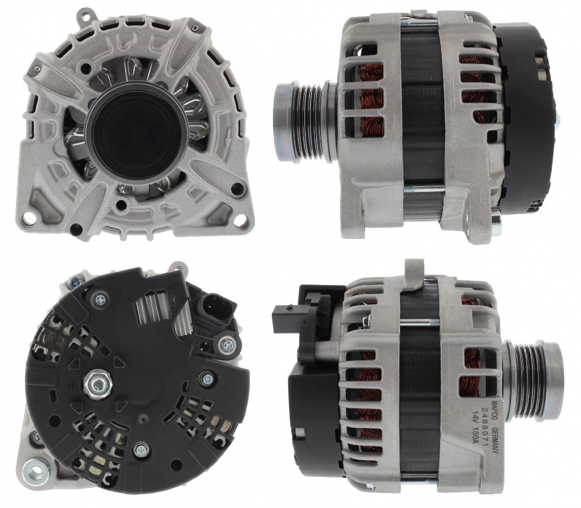 Generator Bordnetzausführung für Fahrzeuge mit 12V Bordnetz Spannung [V] 14 Generator-Ladestrom [A] 150 Riemenscheiben mit Freilaufriemenscheibe Riemenscheiben-Ø [mm] 52 Rippenanzahl 5 Klemme M8 B+ Steckerausführung-ID Com/Lin2 Plug 238- Riemenscheiben:
