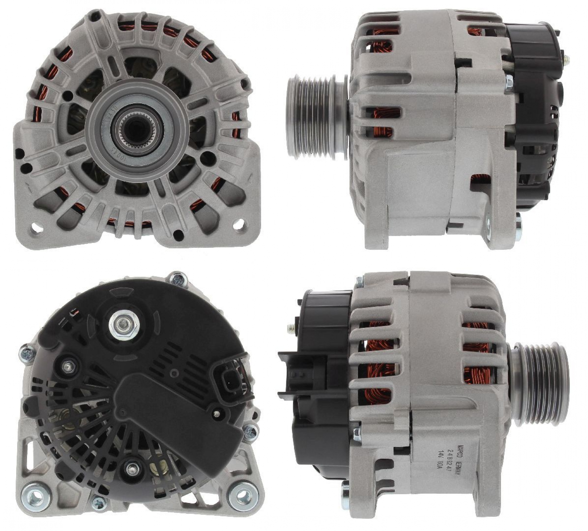 Generator Neuteil ohne Pfand Spannung [V] 14 Bordnetzausführung für Fahrzeuge mit 12V Bordnetz Generator-Ladestrom [A] 160 Riemenscheiben mit Freilaufriemenscheibe Riemenscheiben-Ø [mm] 55 Rippenanzahl 6- Riemenscheiben: