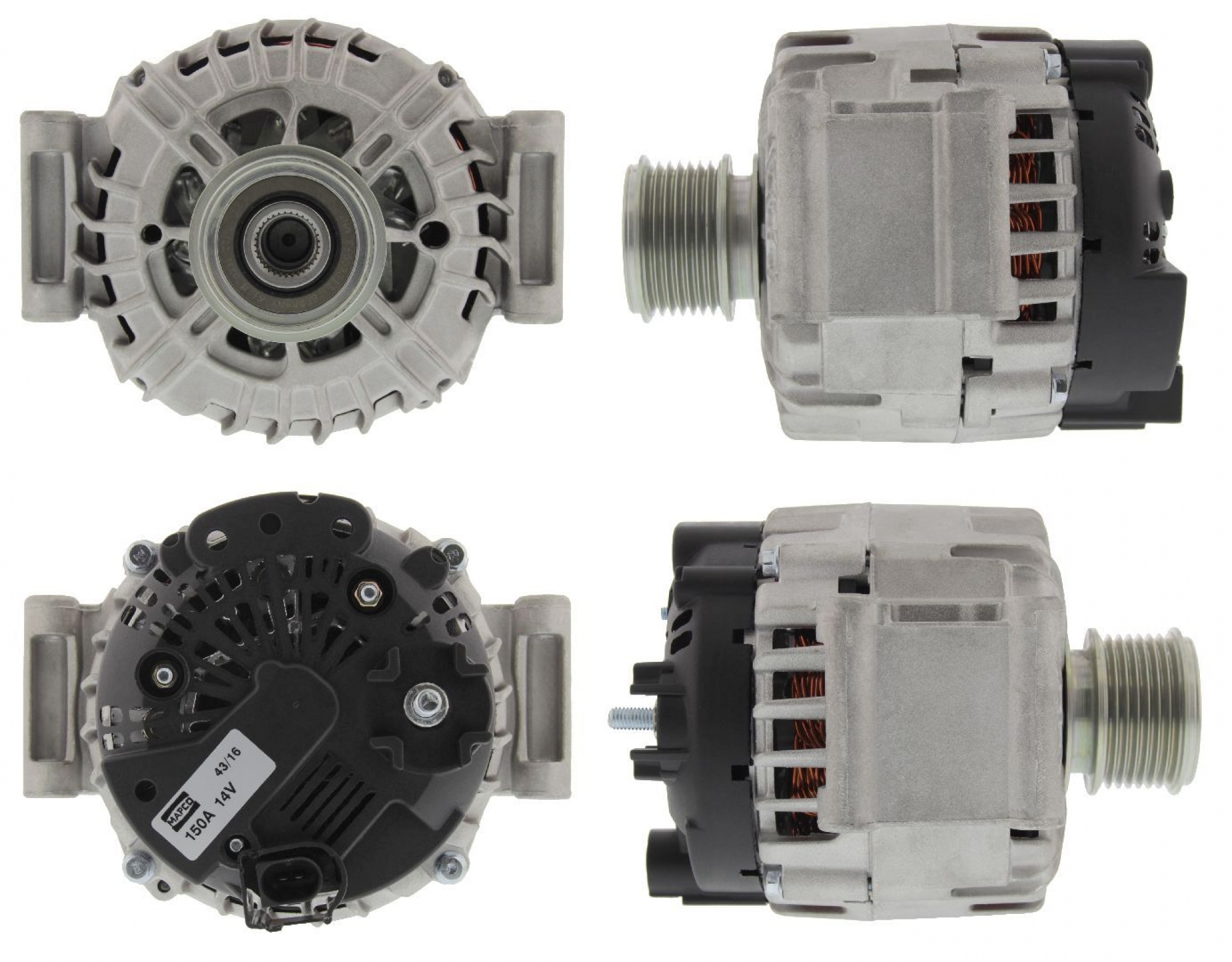 Generator Neuteil ohne Pfand Spannung [V] 14 Bordnetzausführung für Fahrzeuge mit 12V Bordnetz Generator-Ladestrom [A] 150 Riemenscheiben mit Freilaufriemenscheibe Riemenscheiben-Ø [mm] 56,0 Rippenanzahl 7 Drehrichtung Drehrichtung im Uhrzeigersinn Steckerausführung-ID B+ COM- Riemenscheiben: