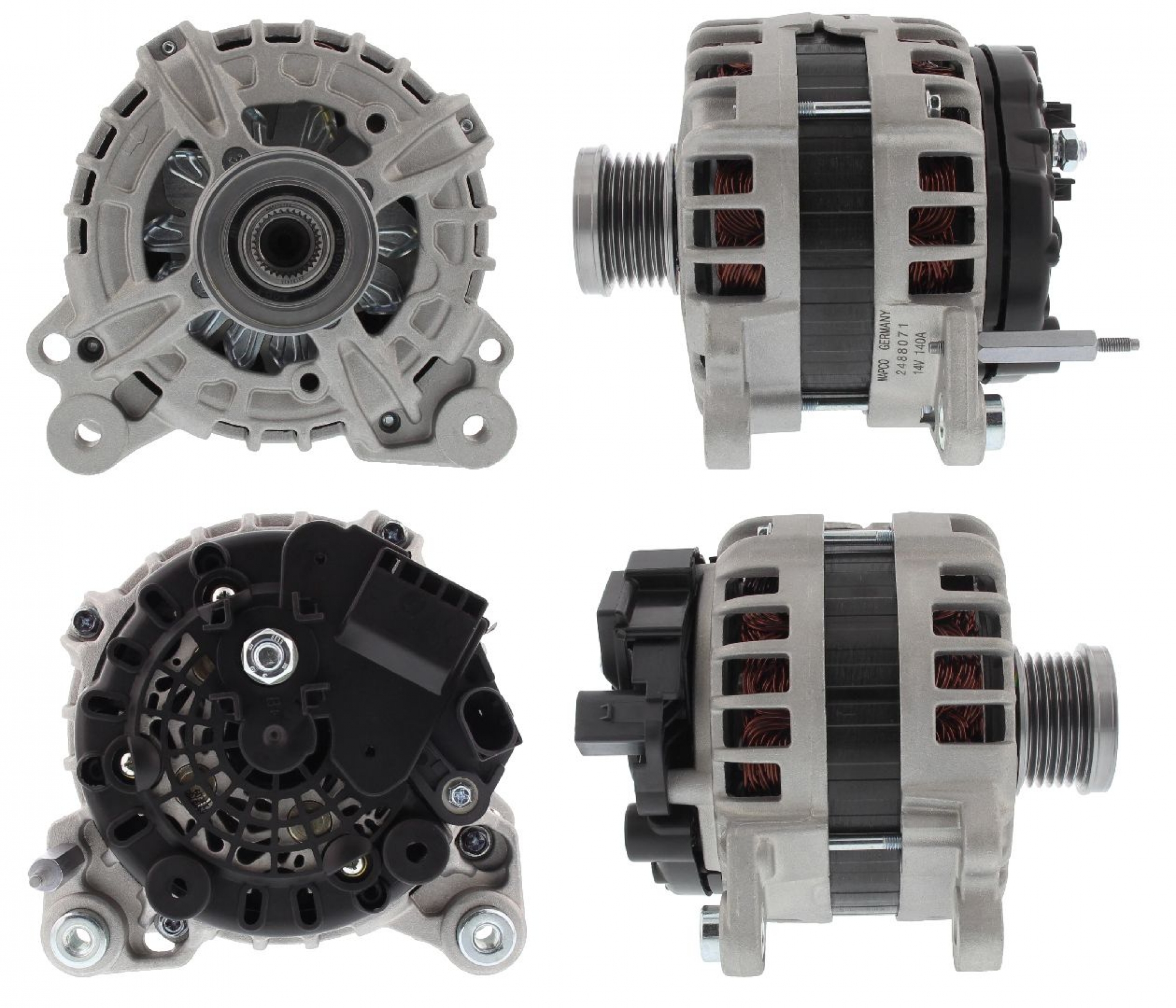 Generator Generator-Ladestrom [A] 140 Bordnetzausführung für Fahrzeuge mit 12V Bordnetz Spannung [V] 14 Riemenscheiben mit Freilaufriemenscheibe Riemenscheiben-Ø [mm] 49 Rippenanzahl 6 Klemme M8 B+ Steckerausführung-ID Com/Lin2 Plug 238- Riemenscheiben: