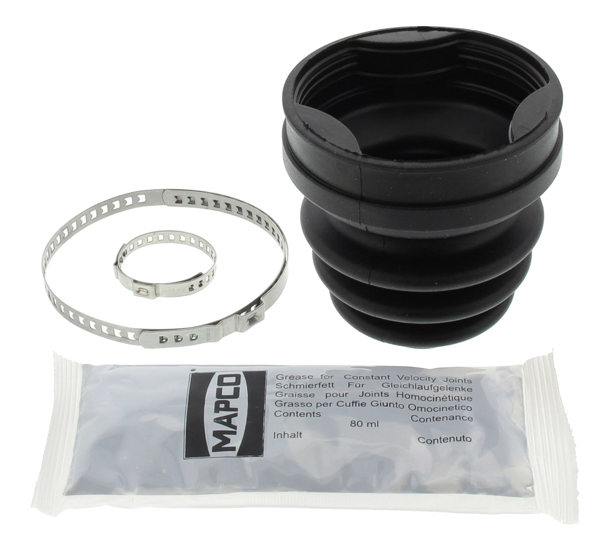 Faltenbalgsatz, Antriebswelle Einbauseite Vorderachse Einbauseite getriebeseitig Länge [mm] 84 Innendurchmesser 1 [mm] 19 Innendurchmesser 2 [mm] 60 Material Gummi benötigte Stückzahl 1 Mengeneinheit Satz mehrteilig mehrteilig- Einbauseite: