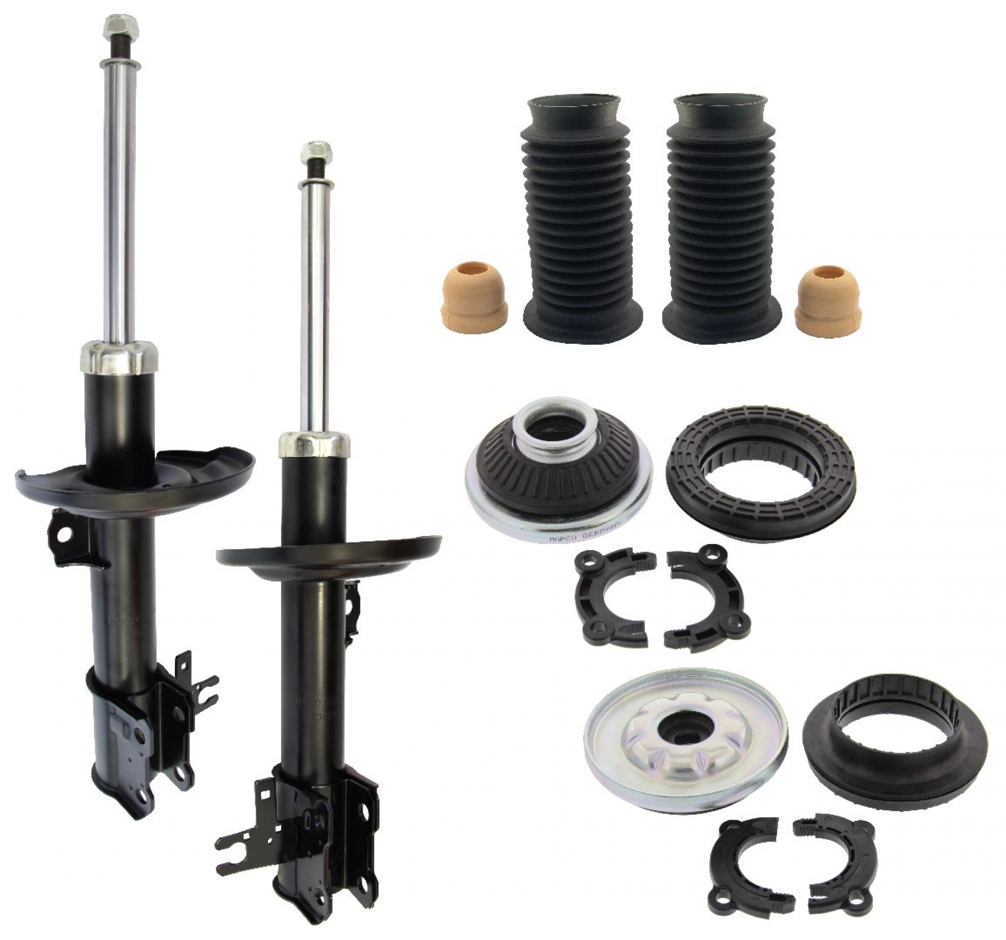 Diese kompletten Stoßdämpfer-Montagesätze ermöglichen eine zeitwertgerechte Reparatur an Deinem Fahrzeug.Warum? Beim Wechsel der Stoßdämpfer sollten auch immer die Federbeinlager, der Staubschutz und die Fahrwerksfedern auf Beschädigungen und Verschleiß untersucht und getauscht werden. Da alle Komponenten unter der gleichen Belastung und Abnutzung stehen, empfehlen wir immer den kompletten Austausch dieser Komponenten und bieten hierfür bereits die passenden Reparatur-Kits an.