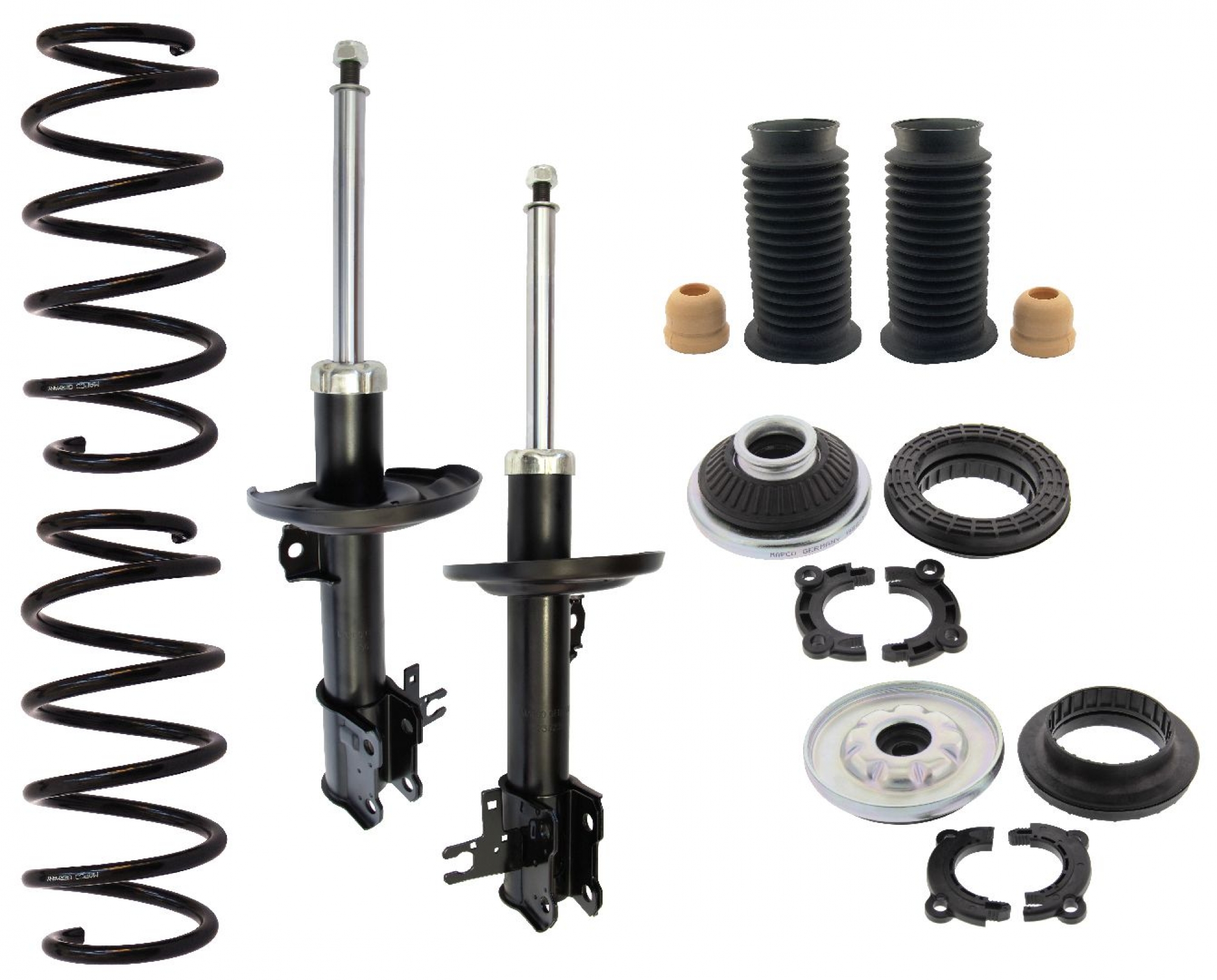 Diese kompletten Stoßdämpfer-Montagesätze ermöglichen eine zeitwertgerechte Reparatur an Deinem Fahrzeug.Warum? Beim Wechsel der Stoßdämpfer sollten auch immer die Federbeinlager, der Staubschutz und die Fahrwerksfedern auf Beschädigungen und Verschleiß untersucht und getauscht werden. Da alle Komponenten unter der gleichen Belastung und Abnutzung stehen, empfehlen wir immer den kompletten Austausch dieser Komponenten und bieten hierfür bereits die passenden Reparatur-Kits an.