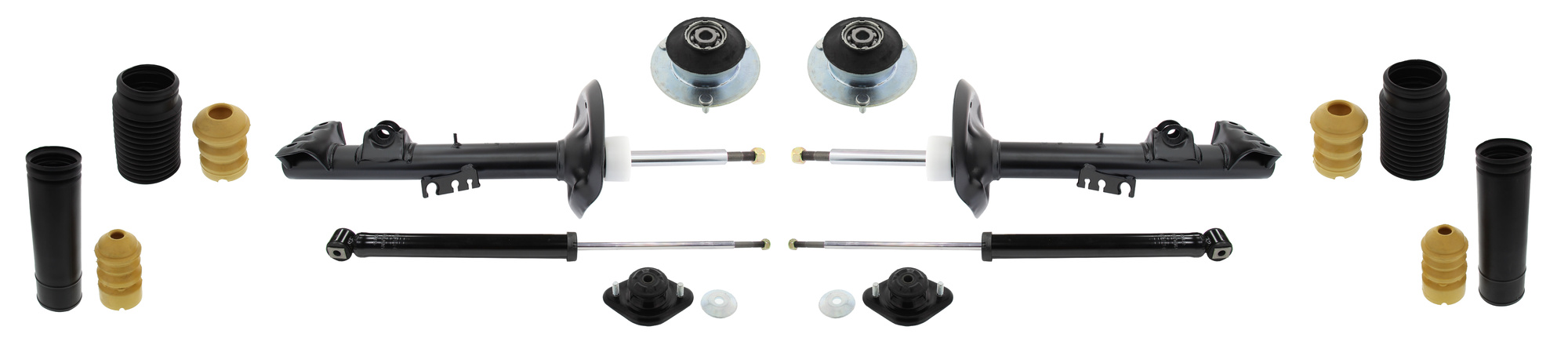 Diese kompletten Stoßdämpfer-Montagesätze ermöglichen eine zeitwertgerechte Reparatur an Deinem Fahrzeug.Warum? Beim Wechsel der Stoßdämpfer sollten auch immer die Federbeinlager, der Staubschutz und die Fahrwerksfedern auf Beschädigungen und Verschleiß untersucht und getauscht werden. Da alle Komponenten unter der gleichen Belastung und Abnutzung stehen, empfehlen wir immer den kompletten Austausch dieser Komponenten und bieten hierfür bereits die passenden Reparatur-Kits an.
